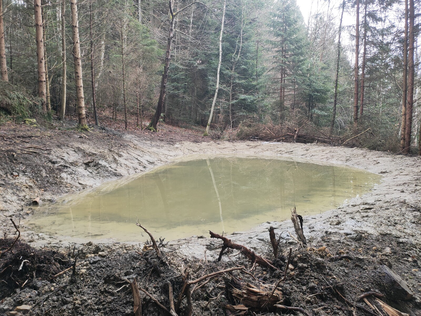 Etat réalisé (février 2026) – Mare forestière dans la forêt de Gentie Pran à Delémont