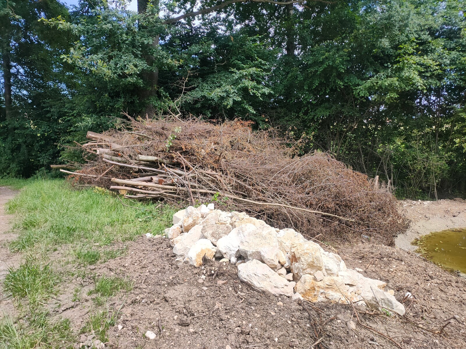 Pour chacun de ces projets, des structures (tas de branches, souches, murgiers, tas de sable) comme habitats terrestres ont été aménagés en faveur de la faune.