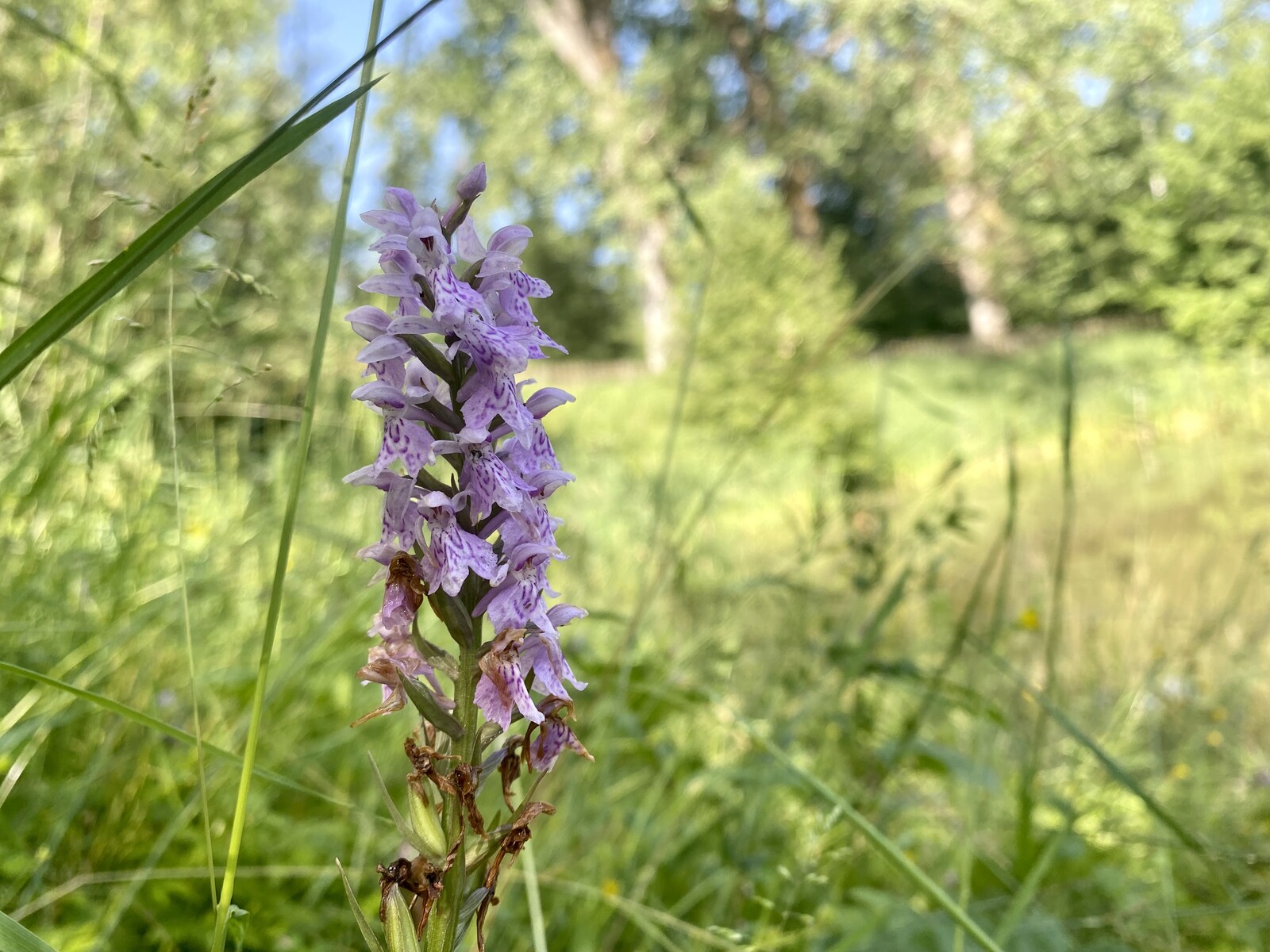 Etat initial (juin 2022) – Certains espaces verts appartenant à la ville contiennent des plantes protégées, comme cette Orchis de Fuchs (𝘋𝘢𝘤𝘵𝘺𝘭𝘰𝘳𝘩𝘪𝘻𝘢 𝘮𝘢𝘤𝘶𝘭𝘢𝘵𝘢 subsp. 𝘧𝘶𝘤𝘩𝘴𝘪𝘪)