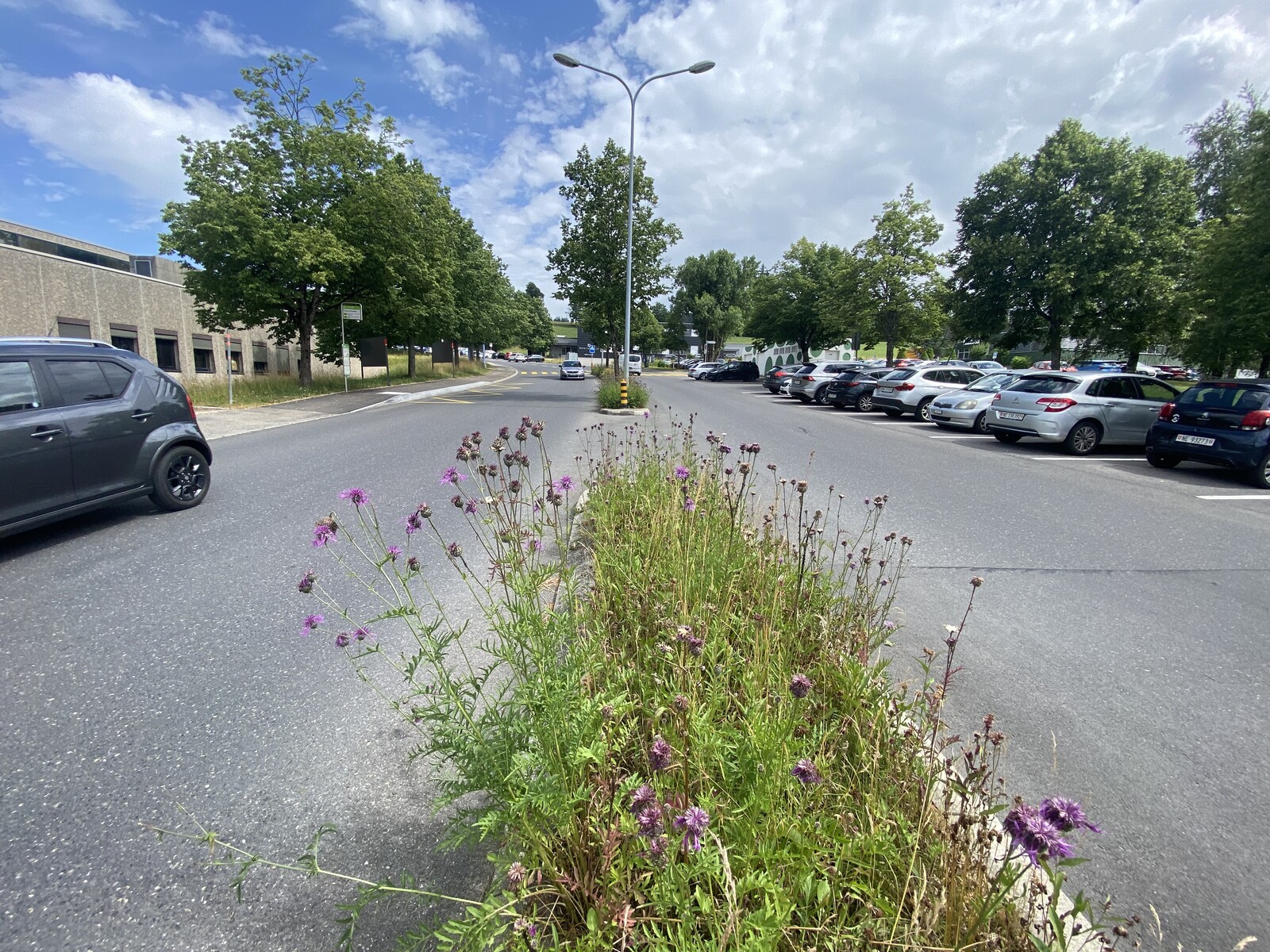Etat initial (juin 2022) – Les ilots routiers végétalisés permettent de connecter les espaces verts entre eux et jouent également un rôle dans l'atténuation des ilots de chaleur par rapport à des ilots en bitume.