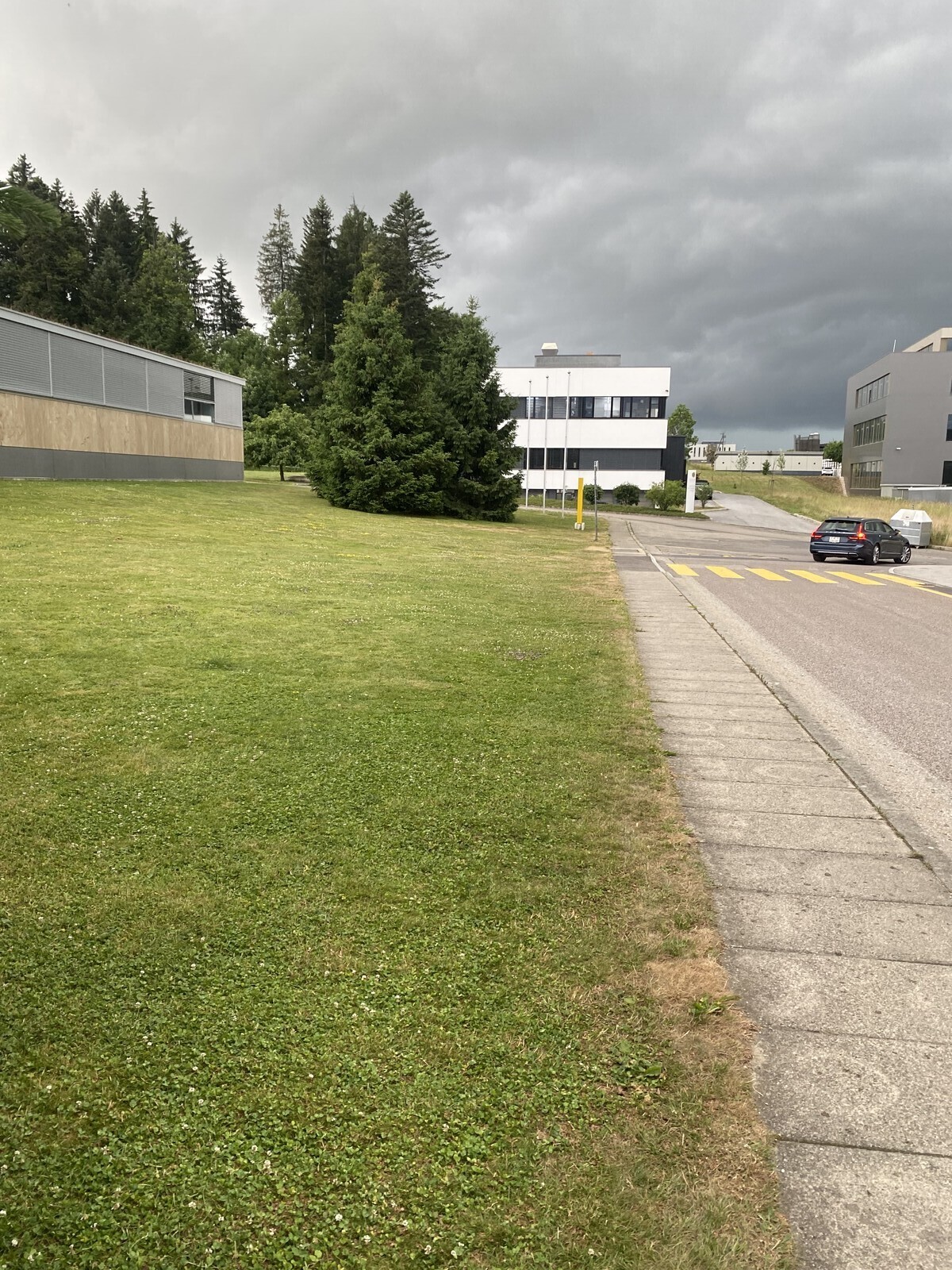 Etat initial (juin 2022) – Certains espaces verts entretenus intensivement présentent un fort potentiel d'amélioration du point de vue de l'entretien et par conséquent de la biodiversité.