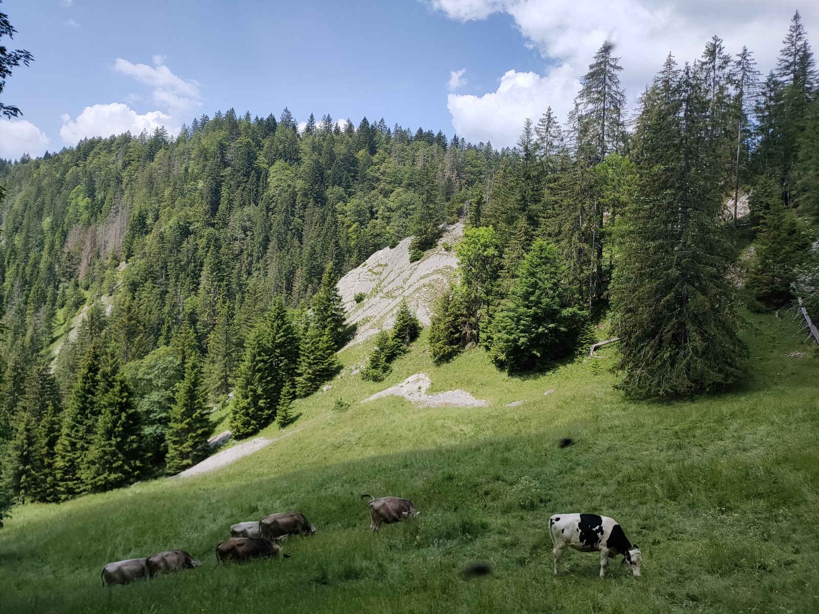 Pâturage et dalles rocheuses dans un vallon (La Côte-aux-Fées)