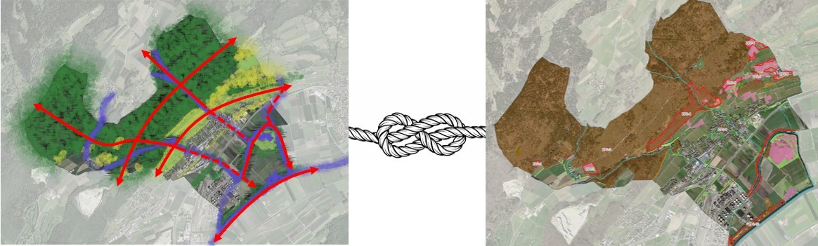 Lien entre l’analyse territoriale initiale (projet de territoire) et le plan des éventuelles futures zones de protection (révision du PAL) (Cressier)