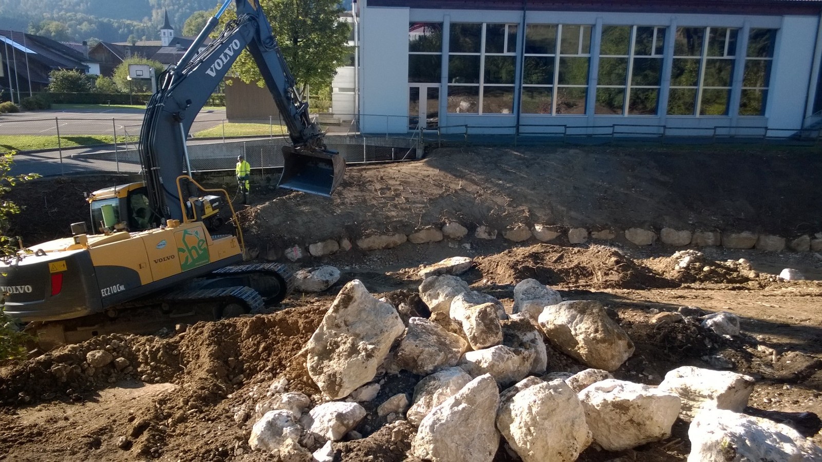 Au fil des ans les crues ont érodé la berge gauche du ruisseau de Montsevelier et les enrochements de pieds de berge n’assuraient plus la stabilité du terrain. La nécessité d’agir était d’autant plus grande que les enjeux sociaux et sécuritaires étaient importants avec la présence de l’école à proximité directe du sommet de berge.