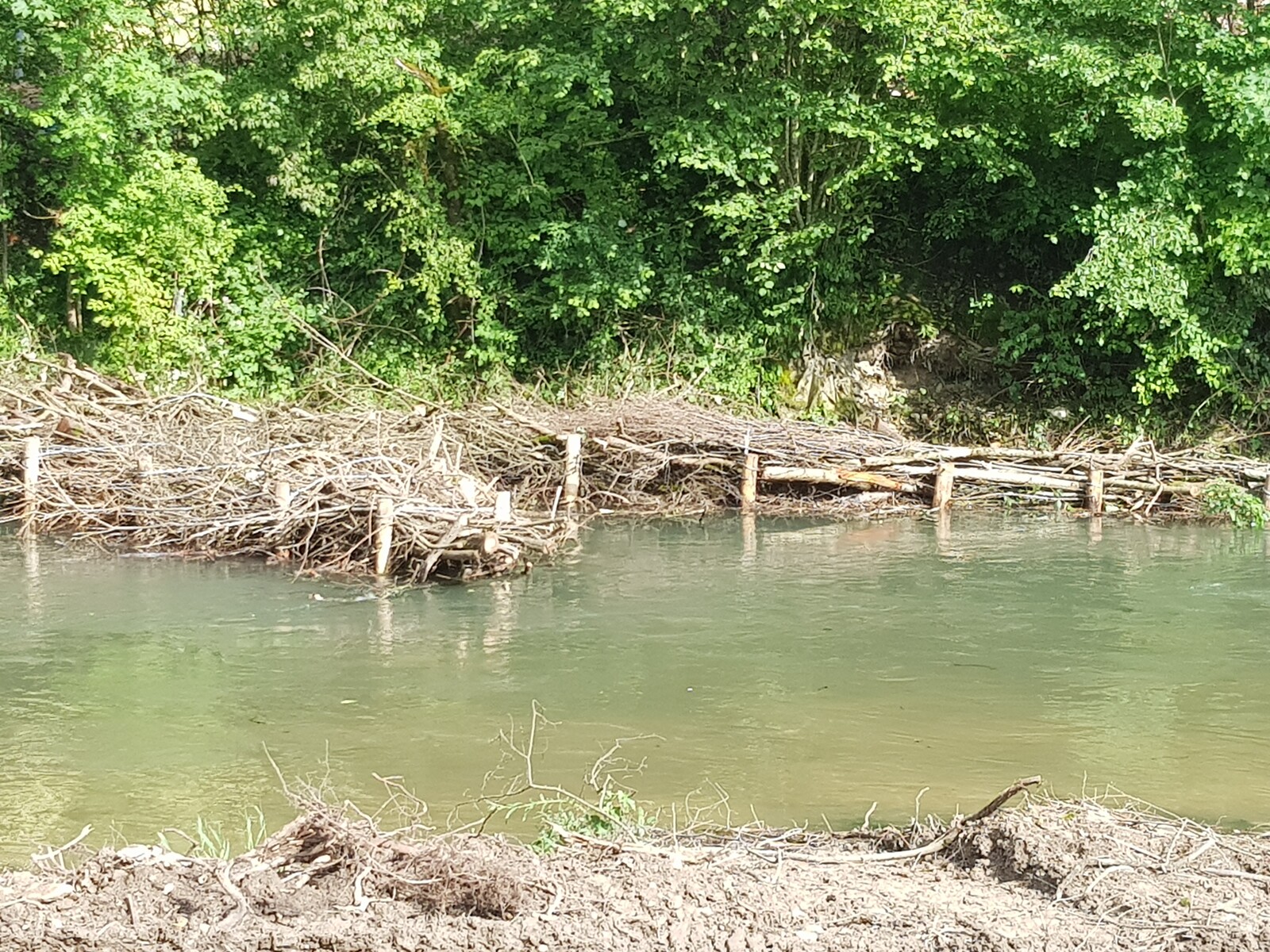 Etat réalisé (juin 2022) – Structures végétales favorables à la faune piscicole au pied de la berge droite du secteur amont