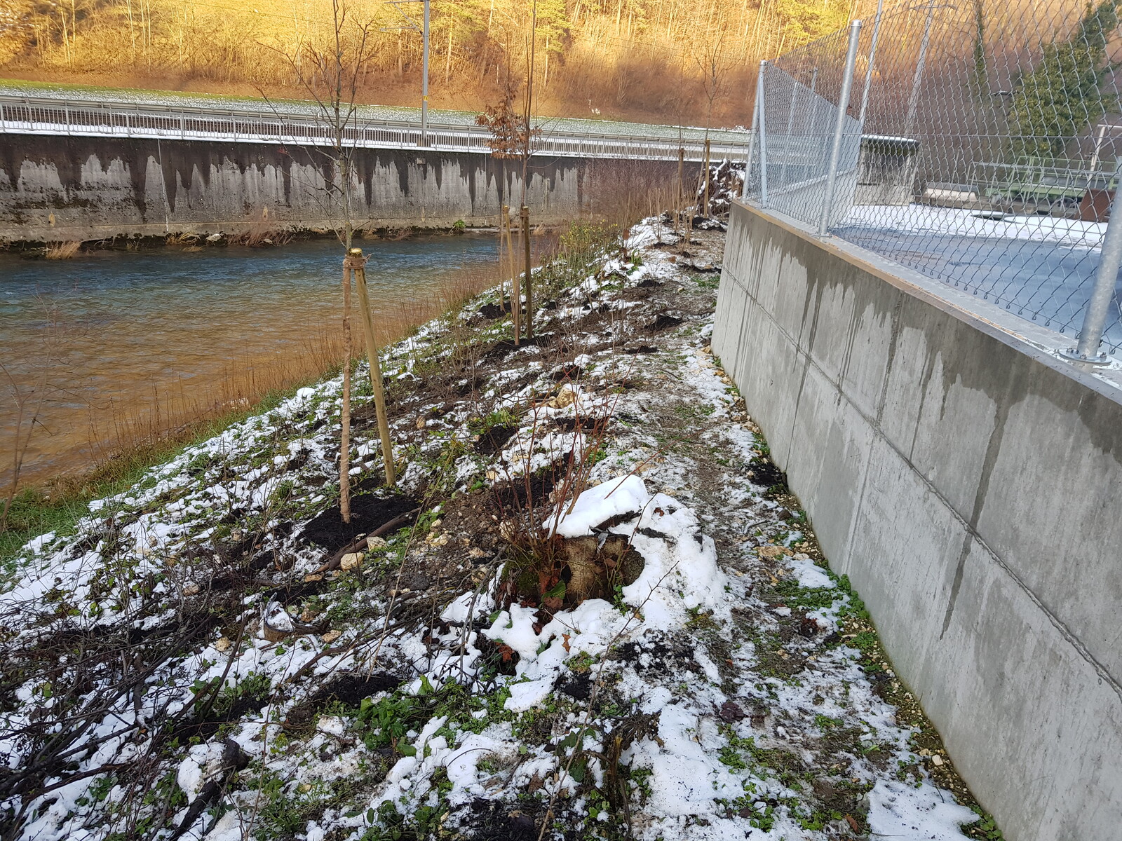 Etat réalisé (décembre 2022) – plantations aux abords de l’étanchéité (mur en béton) nouvellement construite