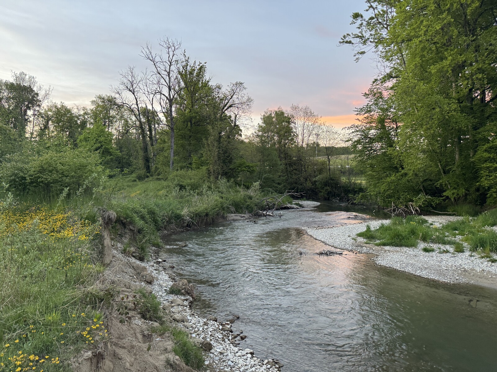 Etat réalisé (avril 2025) - évolution du cours d'eau et développement de la végétation 6 ans après les travaux