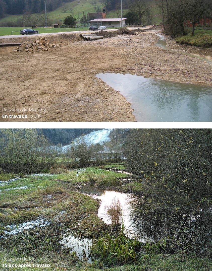 La convention-programme 2020-24 de l’OFEV a instauré en Suisse un système uniforme pour contrôler si les revitalisations de cours d’eau atteignent leurs objectifs et produire des recommandations pratiques basées sur ces résultats. Ce contrôle se décline en deux niveaux, STANDARD et APPROFONDI, qui utilisent différents jeux d’indicateurs adaptés aux projets afin de comparer les effets avant et après revitalisation. Le bureau Biotec réalise depuis 2020 le contrôle des effets sur différents cours d’eau: Ruisseau du Malrang à St-Ursanne (JU), L’Aire à Bernex et Perly-Certoux (GE), La Sorne à Courfaivre et Courtételle (JU), La Chamberonne à Lausanne (VD), La Birse à Courroux (JU), Le Miéry à Undervelier (JU), Le Bey à Avenches (VD), ...